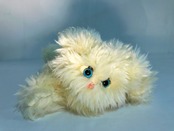 ずるいネコのぬいぐるみ。短い睫毛と青い瞳が、なんだか神秘的。シャワシャワしてる毛並みが自慢。