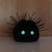 素材:中心部はフェイクファー。トゲはプラスチック。フェイスパーツは全て接着剤で取り付けてあります。