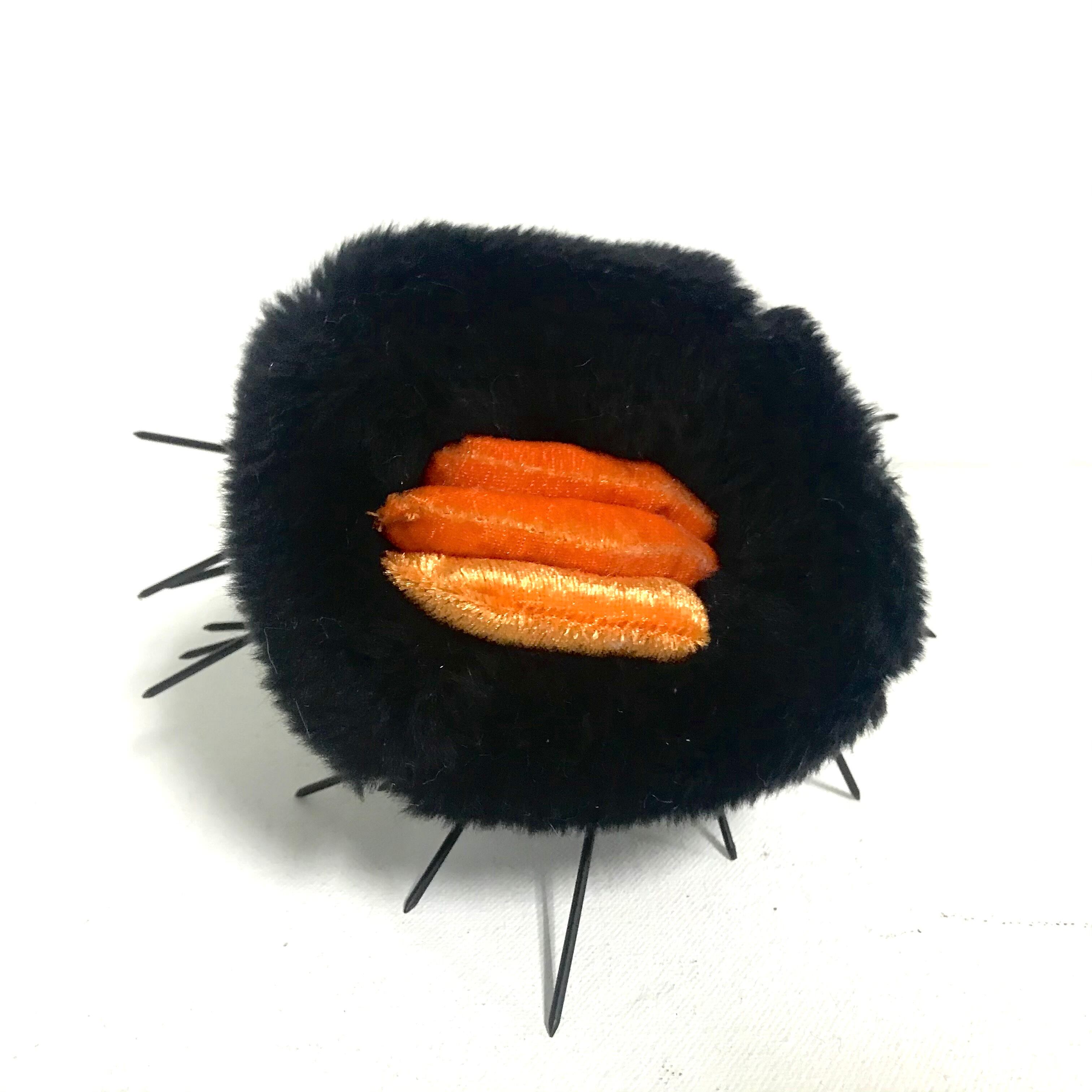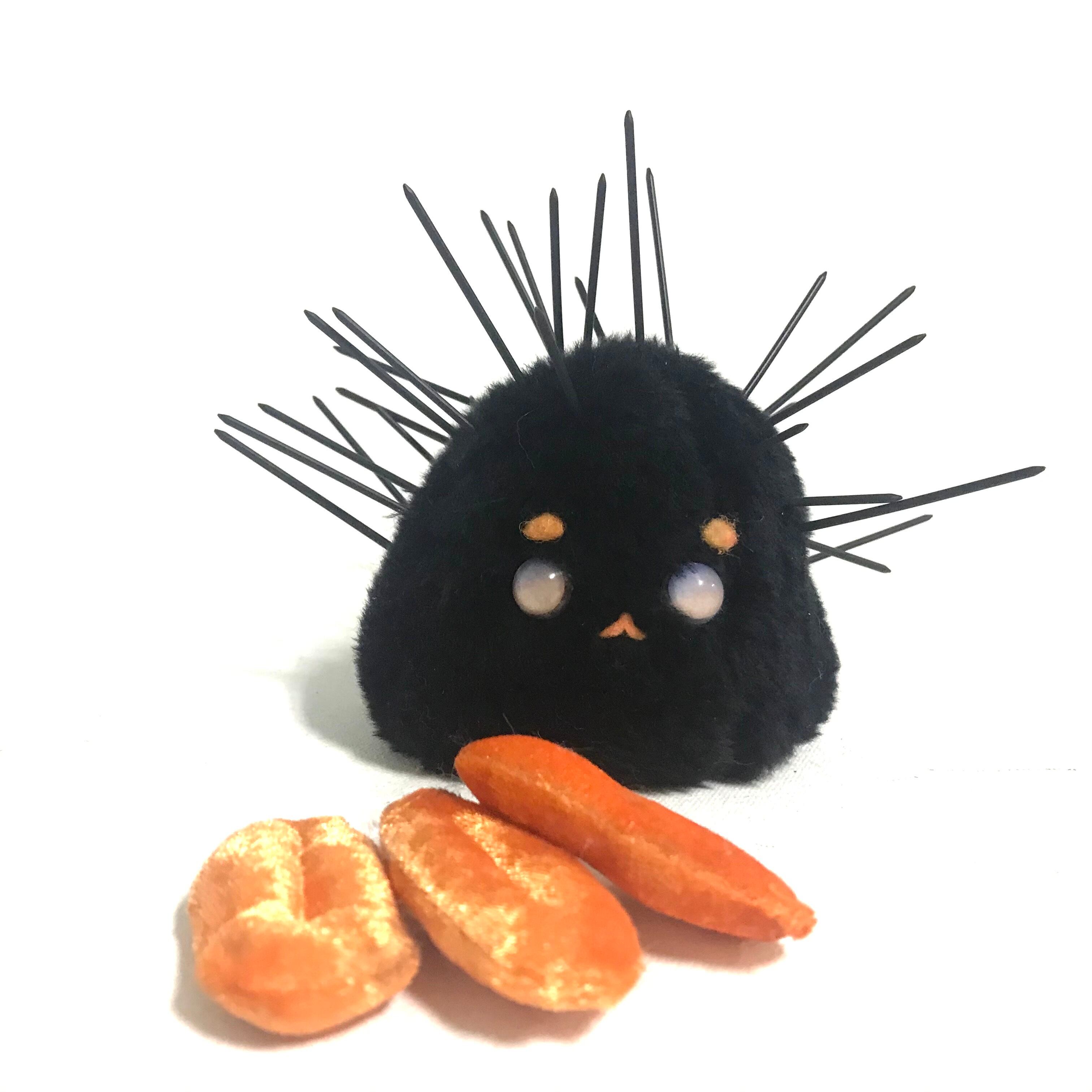 素材:中心部はフェイクファー。トゲはプラスチック。フェイスパーツは全て接着剤で取り付けてあります。