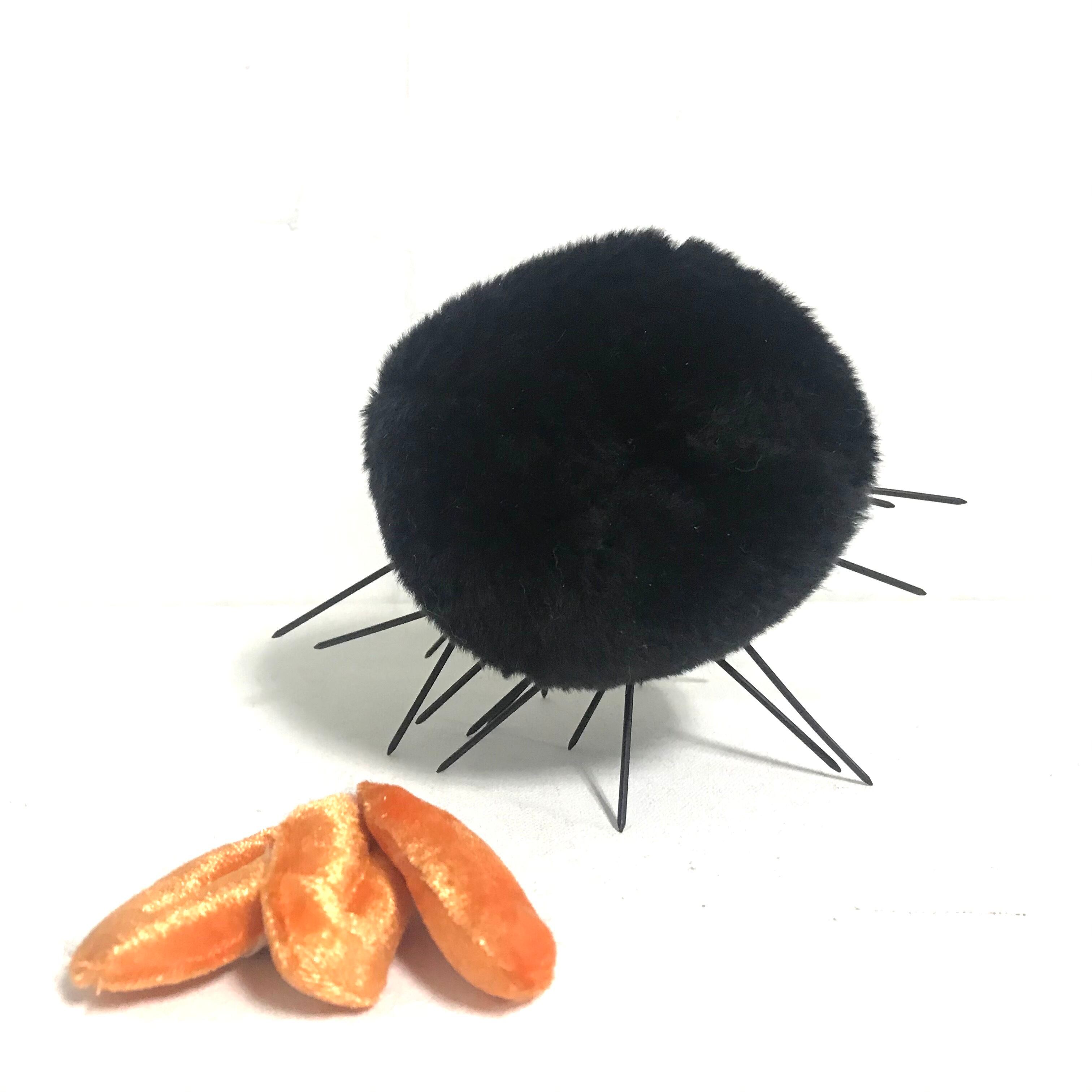 素材:中心部はフェイクファー。トゲはプラスチック。フェイスパーツは全て接着剤で取り付けてあります。