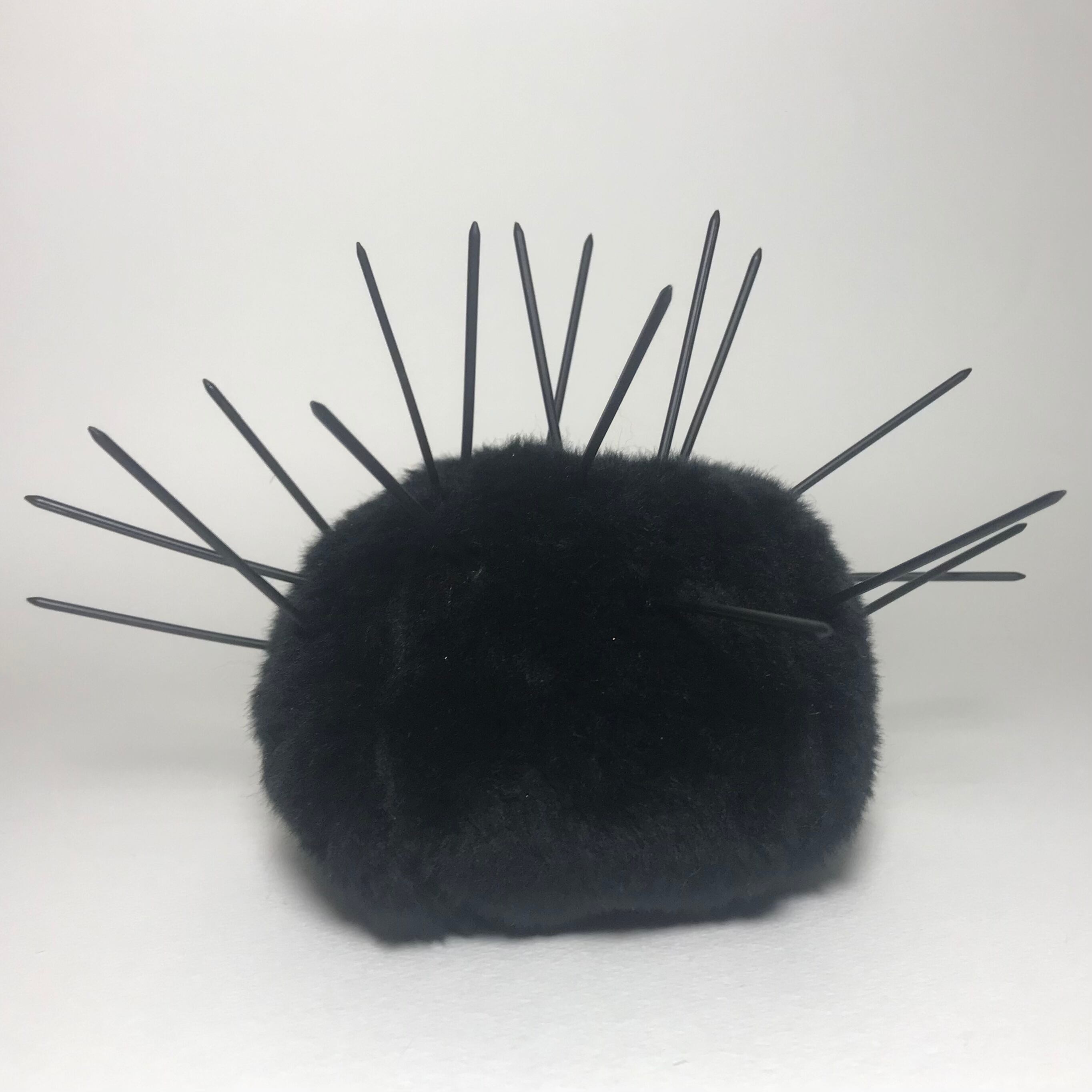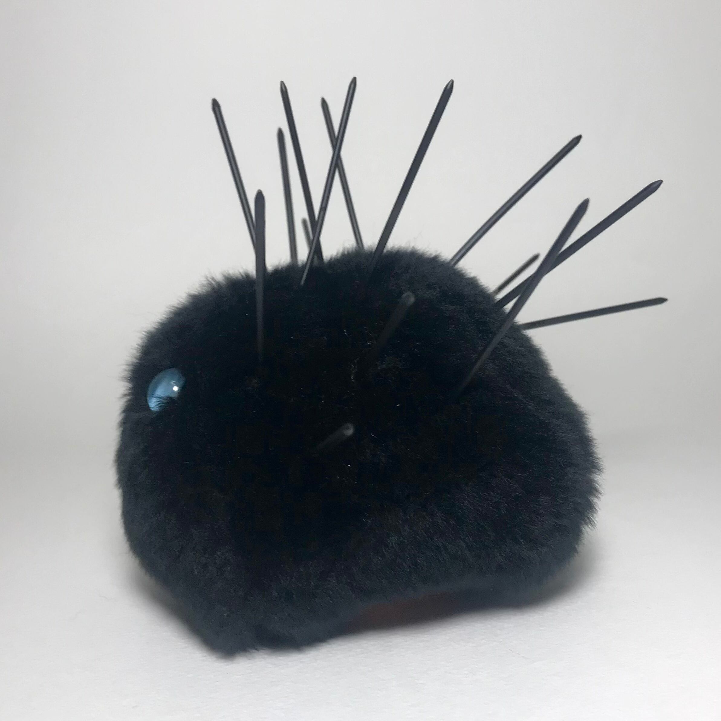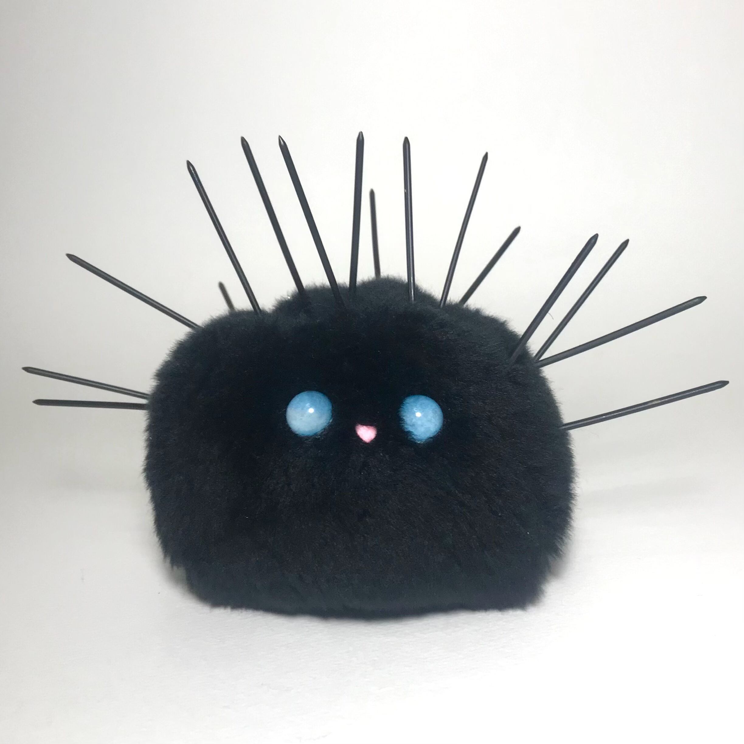 素材:中心部はフェイクファー。トゲはプラスチック。フェイスパーツは全て接着剤で取り付けてあります。