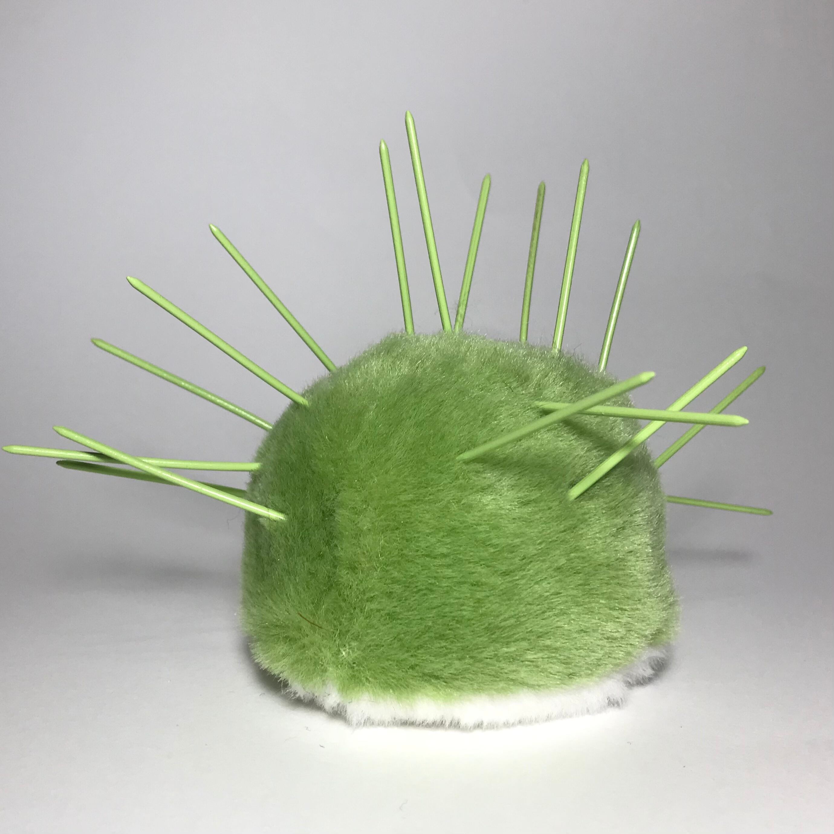 素材:中心部はフェイクファー。トゲはプラスチック。フェイスパーツは全て接着剤で取り付けてあります。