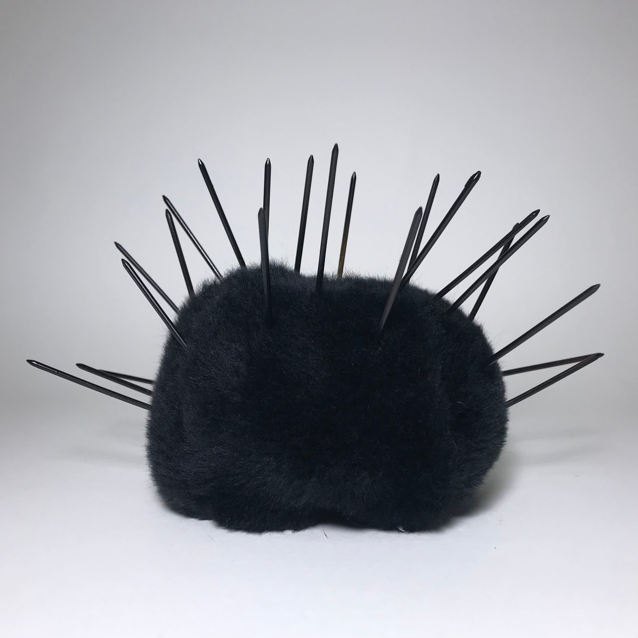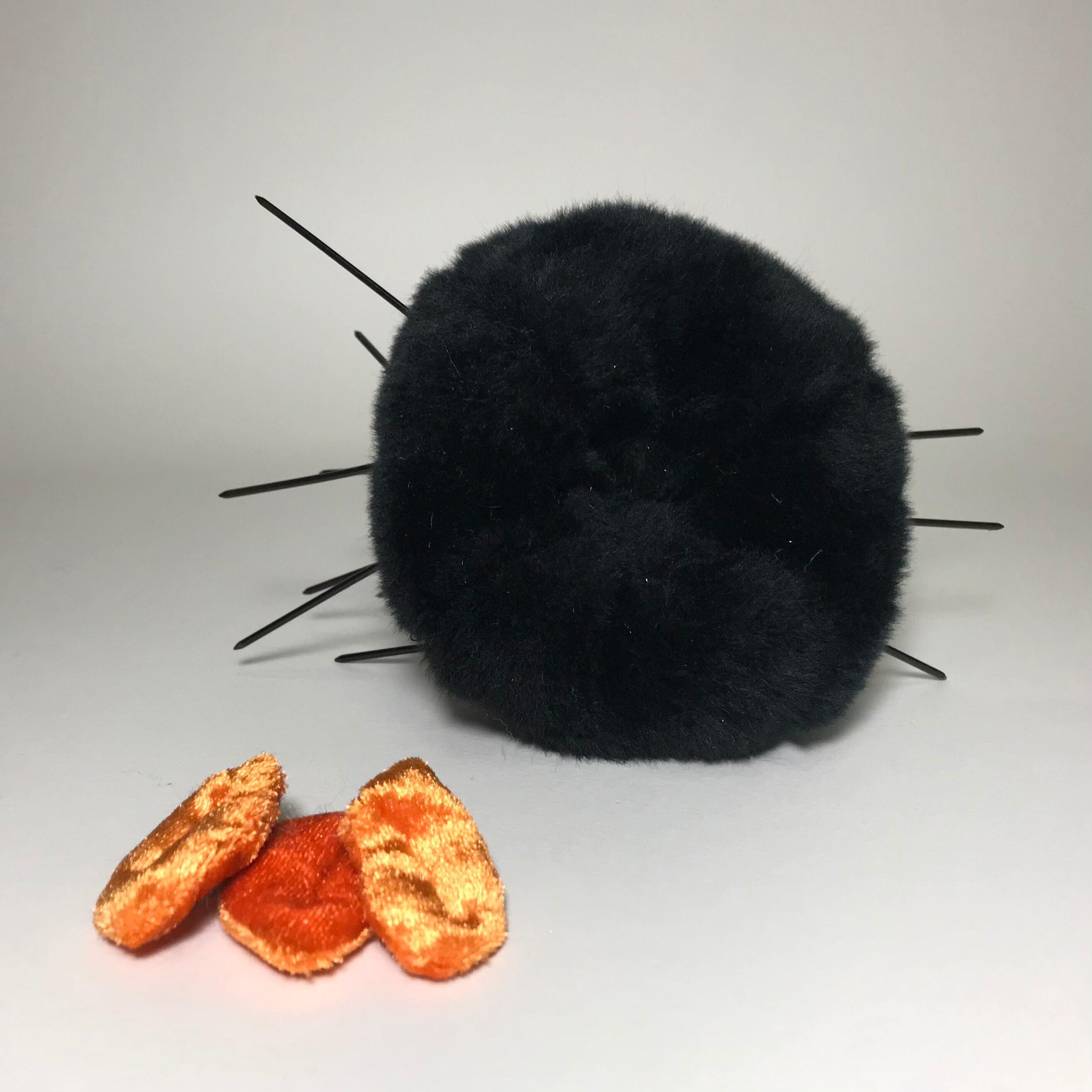 素材:中心部はフェイクファー。トゲはプラスチック。フェイスパーツは全て接着剤で取り付けてあります。