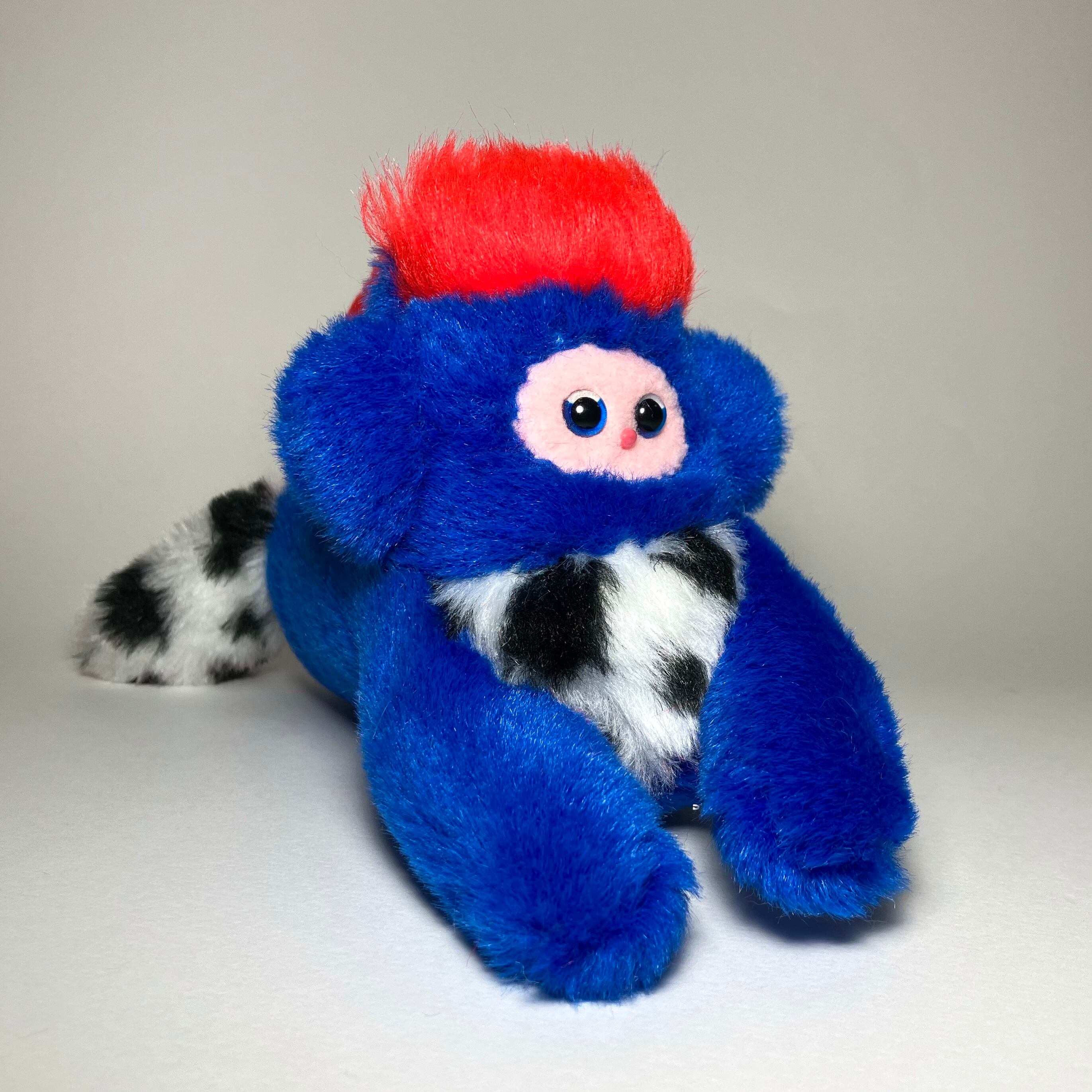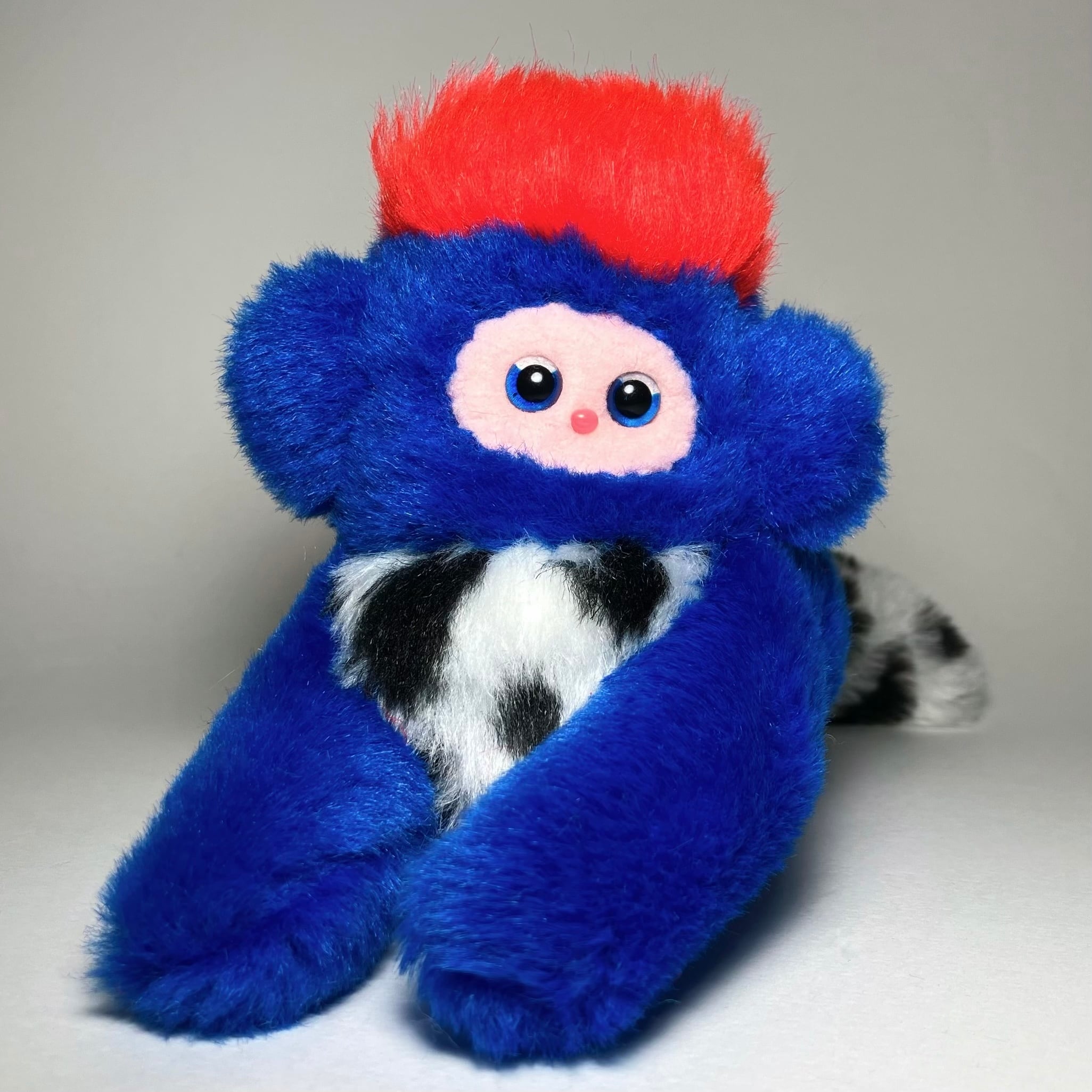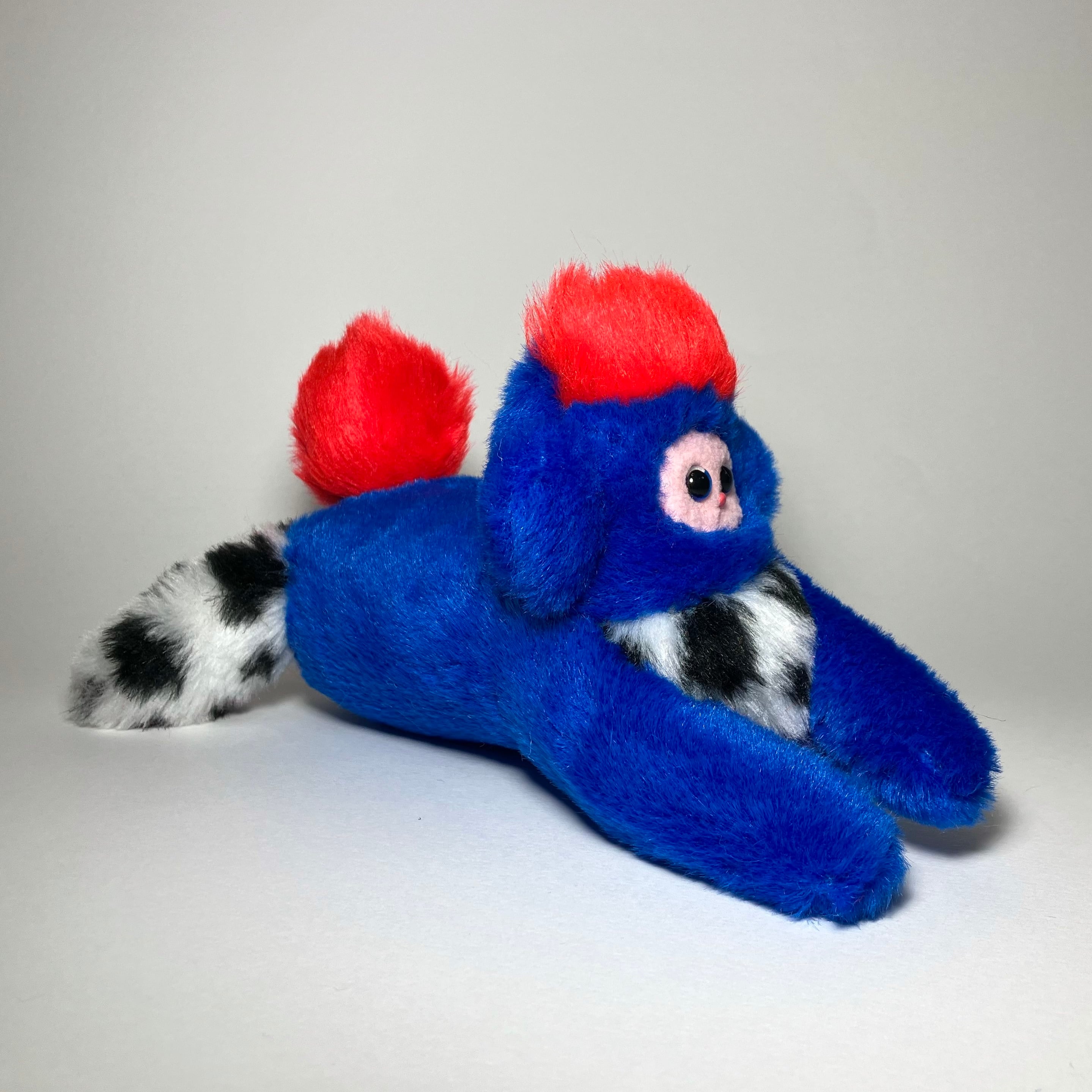 真っ青な毛並みに、真っ赤なヘアーが風変わり。